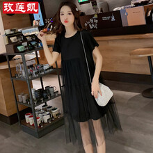 玫莲凯 孕妇装夏季孕妇连衣裙宽松大码网红时尚网纱拼接中长款潮妈孕妇裙 黑色 M