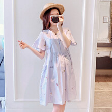 凯琳卡洛儿 孕妇装夏装中长款孕妇连衣裙宽松舒适孕妇裙夏时尚孕妈装夏天外出新款套装孕妇上衣裙子 蓝色裙 M
