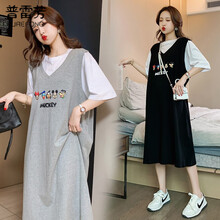 普雷芳孕妇装夏装时尚款韩版宽松大码200斤短袖裙子纯棉孕妇连衣裙洋气潮妈中长款夏季 黑色 M