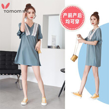 兔妈 孕妇装连衣裙夏季宽松短袖孕妇裙子外出夏装中长款孕妇连衣裙 灰蓝色 S