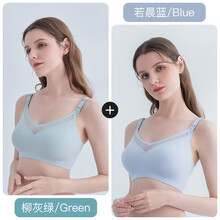 【2件装】婧麒孕妇内衣大胸大码大罩杯怀孕期哺乳文胸超薄款 柳灰绿+若晨蓝【2件装】【适合大胸孕妈】 M(建议110-130斤)