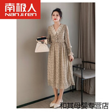 南极人孕妇穿的连衣裙春秋孕妇装外出时尚款长袖雪纺碎花哺乳连衣裙潮妈产后期喂奶衣女 杏色 M