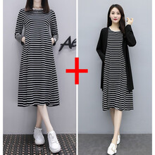 丁孕妇春秋套装外出时尚款连衣裙2021丁唯唯新款网红上衣洋气潮妈早春休闲两件套时尚套装裙子+披肩开衫 长袖连衣裙+黑色开衫 L