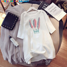 殿若(DIANRUO)孕妇夏装短袖T恤纯棉宽松时尚大码上衣中长款夏季薄款潮妈 白色【0044款】 M