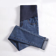 楚歌质优品 孕妇裤子秋冬外穿春秋加绒九分潮妈长裤孕妇裤牛仔裤秋季托腹显瘦 1001蓝色 M码(90-110斤)