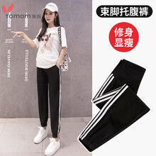 兔妈 孕妇装孕妇裤秋季外穿显瘦休闲裤宽松运动裤九分秋装薄款孕妇裤子 黑色 2XL