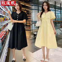 玫莲凯 孕妇装夏季孕妇连衣裙2021夏天新款弹力褶皱V领潮妈外出时尚甜美孕妇裙 黑色 M