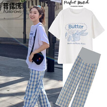 普雷芳孕妇装夏装套装时尚款2021新款孕妇短袖T恤上衣潮妈夏季网红休闲外出两件套 白色上衣+托腹裤【两件套】 M