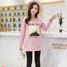依鎏衣品孕妇装2021春秋新款纯棉孕妇T恤时尚印花上衣打底衫孕妇托腹长裤孕妈装套装 粉色单上衣 M建议95-115斤