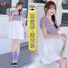 兔妈 孕妇装孕妇裙子夏季薄款宽松连衣裙孕妇夏装中长款条纹假两件裙子 香芋紫 S