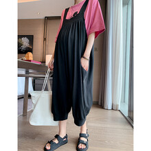 青年里潮妈网红孕妇背带裤春夏九分薄款萝卜裤子外穿春季套装 单件背带裤 (七分裤) 均码