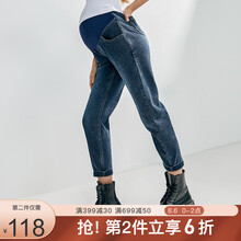 嫚熙(EMXEE) 孕妇牛仔裤秋冬季外穿休闲长裤子小脚牛仔萝卜裤直筒裤潮妈女 复古蓝-常规牛仔萝卜裤【四季款】 L