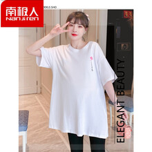 南极人轻奢品牌焕新2021夏季新款洋气孕妇装套装宽松大码短袖纯棉T恤潮妈休闲两件套 白色上衣 M