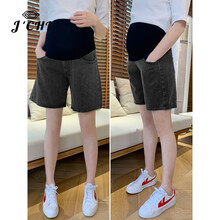JCHI品牌孕妇裤新款薄款外穿直筒型裤子时尚中裤潮妈牛仔五分短裤 灰色8266TM M
