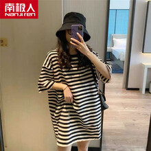 ‼南极人孕妈孕期夏天t恤 孕妇装夏装中长款韩版上衣宽松大码短袖条纹打底衫纯棉T恤夏季潮 黑色 M