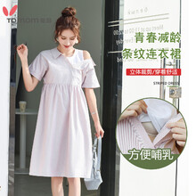 兔妈 【哺乳裙】孕妇装连衣裙夏季新款时尚外出哺乳期连衣裙中长款大码 红白条 S
