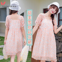 兔妈 孕妇连衣裙夏季孕妇装薄款宽松雪纺连衣裙外穿中长款大码夏装裙子 橙粉色 S