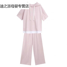 孕妇装夏装上衣时尚款T恤衫套装夏天潮妈休闲洋气外出运动两件套 粉色【两件套装】 XL