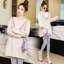 孕妇装春秋装卫衣时尚款套装外出网红小个子长袖上衣春季两件套潮妈女 杏色---单件上衣 XL