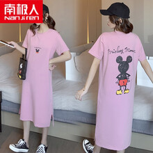 南极人高档轻奢优雅气质孕妇女装新品孕妇T恤中长款纯棉夏装孕妇连衣裙春装卡通宽松休闲孕妇T恤裙潮妈 粉色 M