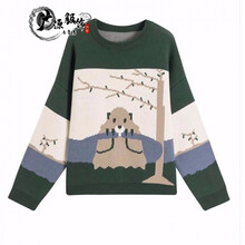 罗蒙 oyishan高端轻奢孕妇装秋装套装时尚2020年网红款孕妈潮装秋孕妇外出春秋装两件套国潮 绿色毛衣单件【小熊款】 L