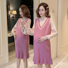 国货之光罗蒙 香港潮牌 2020孕妇秋冬装新品针织毛衣洋气潮妈外穿孕妇连衣裙中长款国潮 玫红色 XL