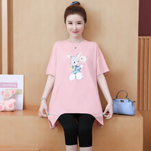 卓贝欣孕妇上衣夏装宽松时尚款打底衫大码夏季短袖韩版T恤中长款网红潮妈 粉红色 M