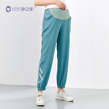 孕之彩孕妇裤春款偏薄休闲撞色织带雪纺收脚裤孕妈全阶段运动风九分托腹裤 豆绿 M