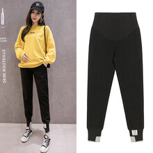 京选优品孕妇打底裤裤子春秋外穿时尚螺纹小脚裤潮妈休闲托腹怀孕长裤秋装 黑色 M