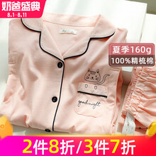 静孕纯棉月子服春夏秋【厚薄可选】透气哺乳睡衣针织孕妇睡衣产妇产后哺乳衣喂奶衣 【夏季160g】粉猫咪【100%棉】 M码(推荐100-125斤)【7.1-7.11奶爸盛典】【全店2件8折3件7折】【秋冬囤货,100%精梳棉,更柔软,更耐磨】,送运费险