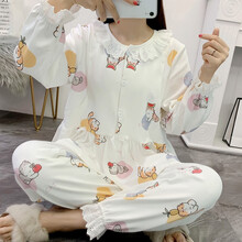 七采雏菊春秋月子服纯棉孕妇睡衣秋冬季哺乳衣长袖套装孕妇装喂奶衣外出母婴用品 36809白色小猫 纯棉 月子服套装 L码纯棉月子服睡衣套装可选,一衣多用,孕期,产后都可以穿,哺乳方便