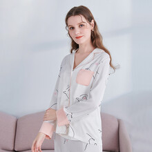 婧麒(JOYNCLEON)月子服夏薄款产后哺乳孕妇睡衣夏天季喂奶产妇家居服女 粉白-猫咪款 M jyz11157A【怀孕了.穿婧麒】部分产品满299减40满499减70 爆款防辐射吊带限时8.5折起,更多孕产好物等你来抢