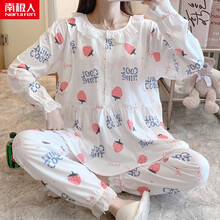 南极人时尚辣妈睡衣春秋棉质长袖孕妇睡衣公主可爱月子服产妇10月份哺乳产后喂奶 DD-2011-10#白字母草莓 长袖棉套 L