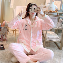 孕薇贝儿 孕妇睡衣秋冬产妇珊瑚绒月子服加厚喂奶家居服法兰绒哺乳衣套装 喵1112#粉色天鹅绒 M码