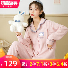 【上新】家时光月子服春秋冬保暖101112月孕妇睡衣纯棉哺乳衣产妇产后哺乳睡衣喂奶衣 粉色 M码 推荐100-125斤