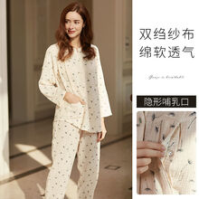 途中雨孕妇睡衣夏季薄款纱布月子服春秋5月份产后7哺乳家居服6产妇8 绉布蒲公英 XXL(体重150-170斤)