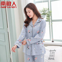 南极人Nan ji ren 翻领女士睡衣女家居服套装月子服舒适宽松可外穿 天蓝 M