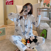 乐希源孕妇睡衣女夏季纱布月子服春夏天薄款产后10月份哺乳家居服十轻奢品牌 纱布翻领白色米奇 M【90-105斤】