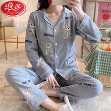 浪莎旗舰官方新品专柜大码月子服夏季产后薄款纯棉纱布5月份6产妇哺乳孕妇睡衣加肥加大 D灰色-翻领小熊纱布月子服 M【建议产后95-120斤】