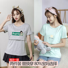 VISREA新款哺乳衣外出辣妈月子服夏季薄款哺乳上衣产后喂奶衣服外出母乳 D11爱心少女灰+D11小雏菊水蓝色 M码建议体重【80-110斤】