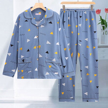 大码睡衣女200斤春秋新款80-250斤加肥加大码睡衣女长袖秋季胖mm宽松ins风秋冬月子服套装 A# (三角形)蓝色 M 【80-100斤】