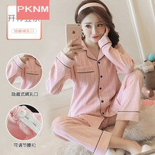 月子服夏季孕妇睡衣哺乳衣怀孕期产后喂奶衣春秋薄款家居服套装 开衫竖条 L码建议【105-120斤】