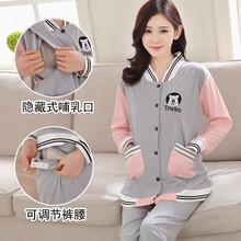 孕妇开衫长袖套装夏季产妇产后月子服春秋季纯棉睡衣哺乳衣家居服 雪熊开衫 208# L