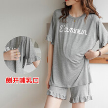 2021新品月子服春夏季薄款产后休闲孕妇哺乳睡衣3月份4短袖7分裤吸汗透气5 浅灰色 XXL