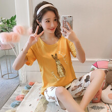 月子服短袖夏季薄款棉质孕妇怀孕期哺乳睡衣产后宽松喂奶时尚套装 姜黄兔短袖-Y530 L