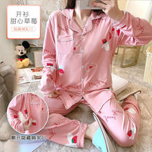 孕妇喂奶产后哺乳睡衣春秋薄款坐月子服春夏季产妇母乳期套装外出 开衫甜心草莓 L码建议【105-120斤】