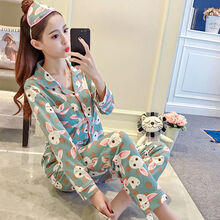 劳熙莱(LAOXILAI)* 劳熙莱2021新款睡衣女春秋冬学生ins韩版纽扣开衫月子服长袖休闲外穿 优质:绿兔 M (建议80-95斤)