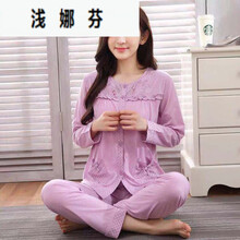 【加肥加大80-200斤】大码睡衣女春秋冬季天长袖胖妹妹月子服套装 紫色套装 M 80-100斤