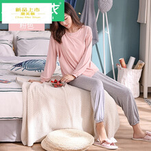 栀束夏季薄款月子服孕妇睡衣春秋产后产妇哺乳喂奶家居服套装 粉色 M