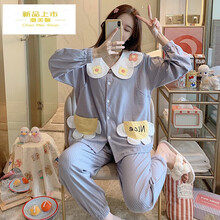 产后月子服小个子2021新品坐春秋孕妇睡衣夏薄款喂奶女套装产妇哺乳衣 WJ-5815#蓝花 套装 M